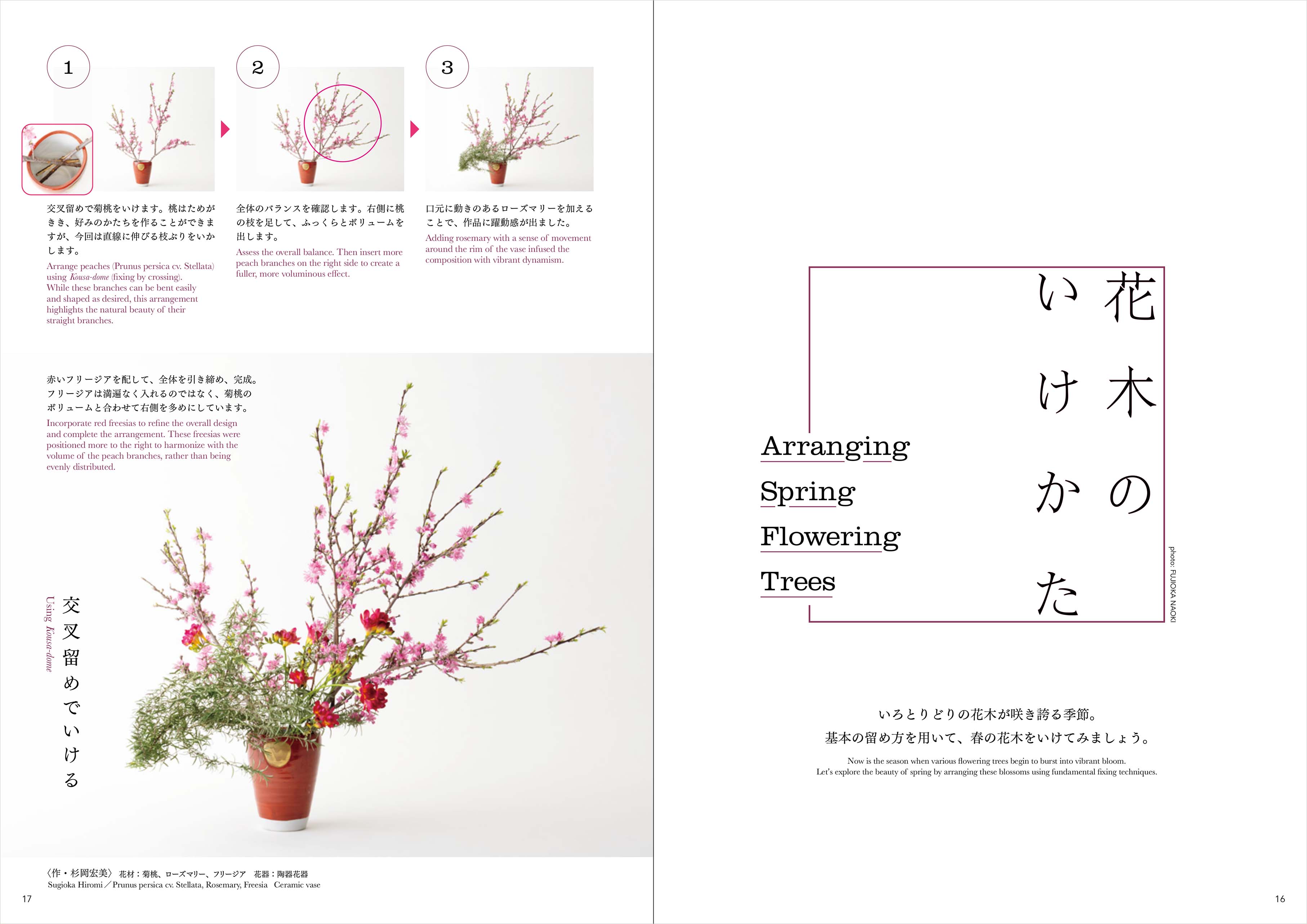 Let’s explore the beauty of spring by arranging these blossoms using fundamental fixing techniques.
