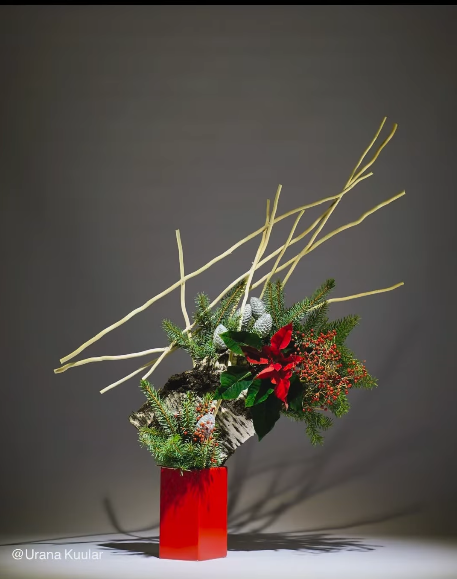 I arranged white branches to take up the space and some Ilex aquifolium to emphasize the awareness of Christmas.