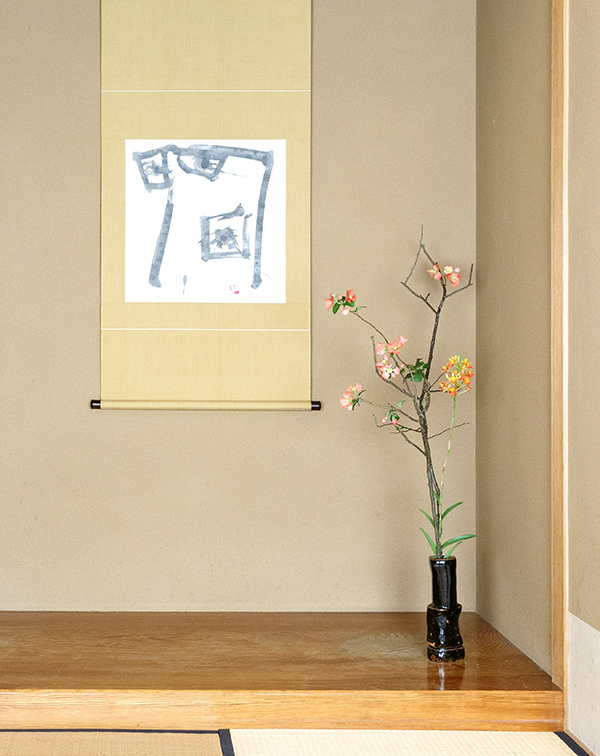 In the Japanese room on the fifth floor of the Sogetsu Kaikan, seasonal ikebana works are constantly on display for public view.