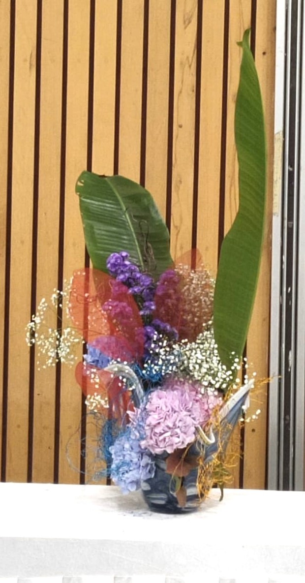 The Demonstration was very innovative and she used various green material to depict the theme that she had chosen “A Dialogue with Nature”.