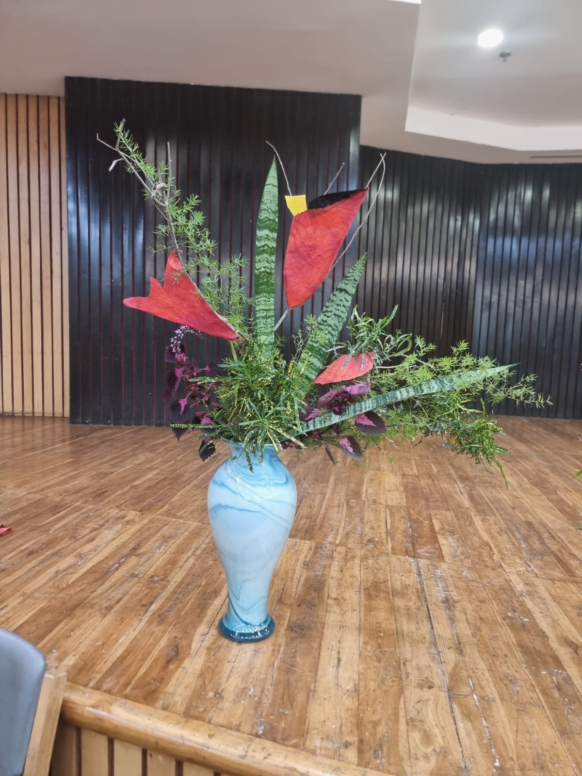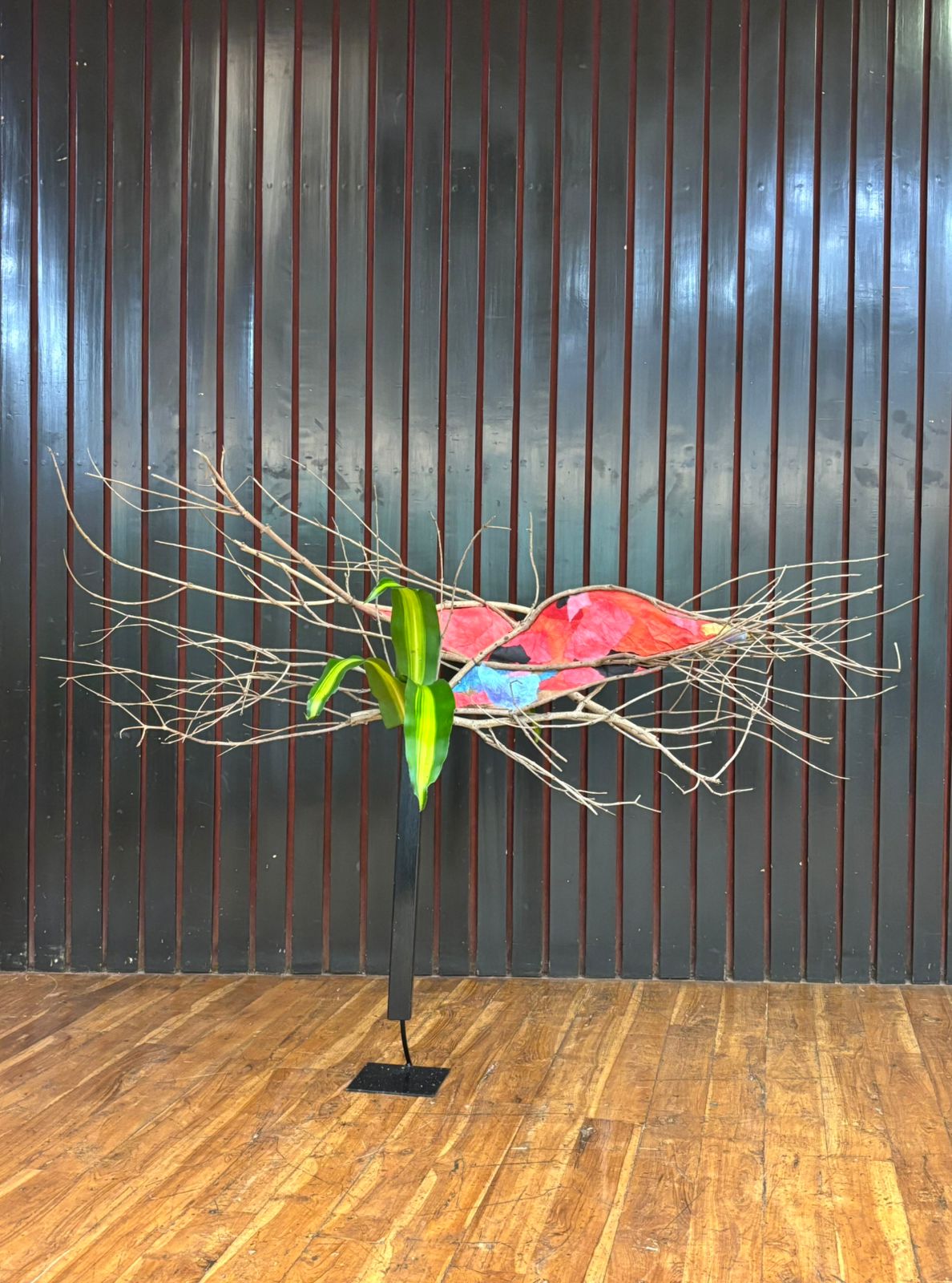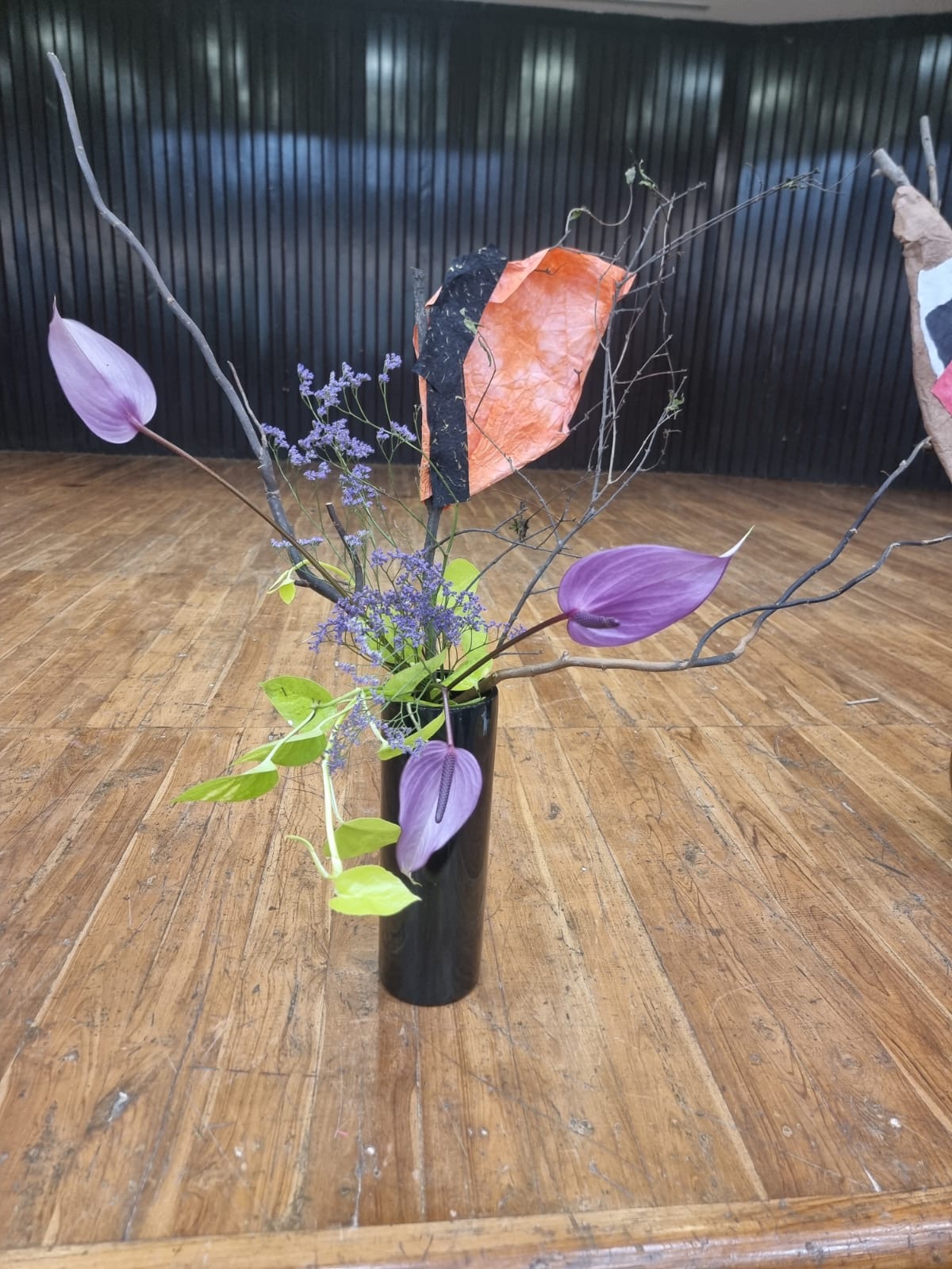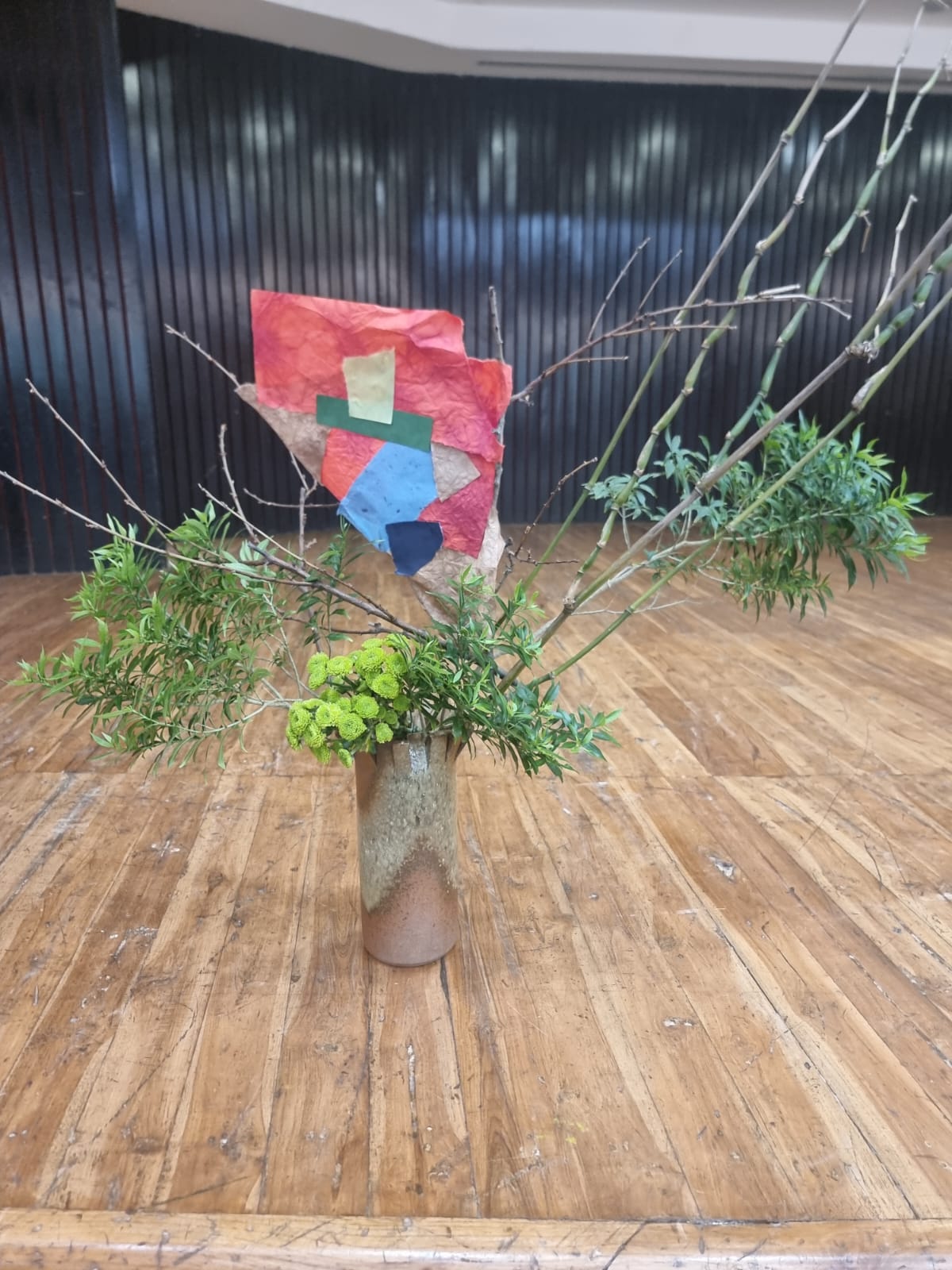 It was a very innovative and educative workshop as the members here had never used paper to cover space and create a different look to the dried branches. The Members were very enthusiastic and tried to create various Ikebana. They used the greens and the flowers which were provided to them to enhance the arrangement.