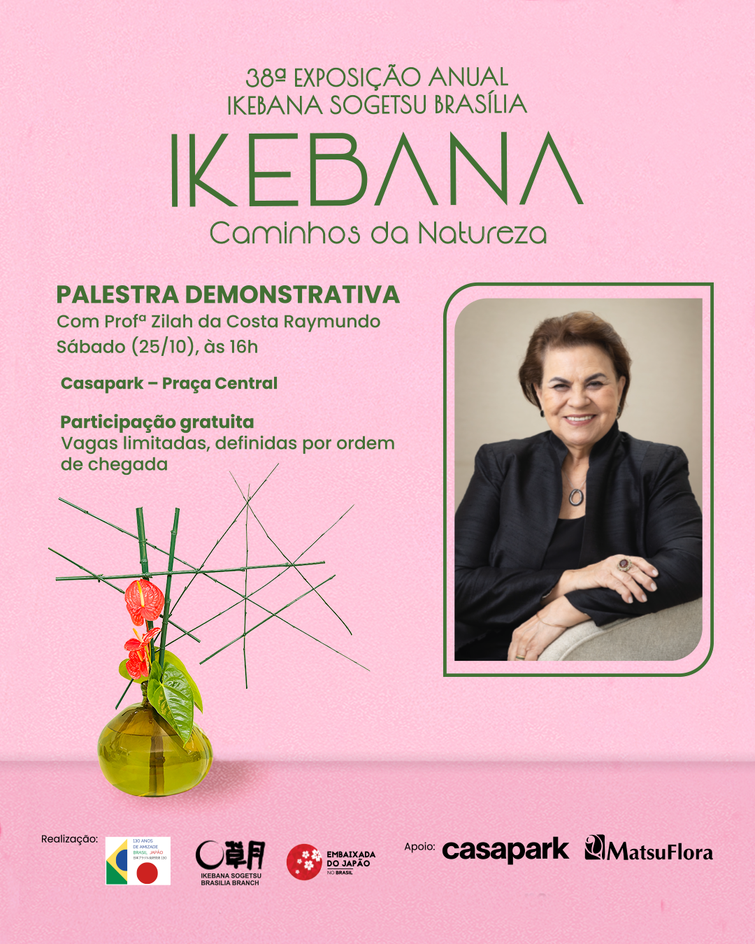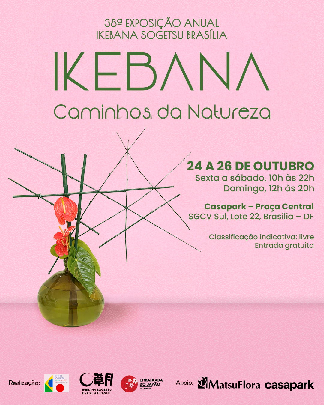 We would like to inform you about the 38th Annual Ikebana Sogetsu Exhibition, titled Caminhos da Natureza, which will be held in Brasília from October 24th to October 26th, 2025, at Casapark – Praça Central.