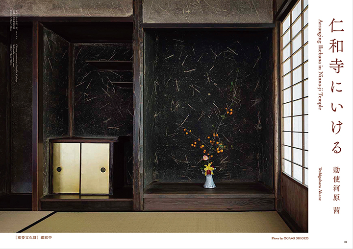 In the winter issue of the quarterly magazine ‘Sogetsu’, we have three special features set in Kyoto. The first article is about Iemoto arranging ikebana in Ninna-ji Temple, famous for its association with the Imperial Family.