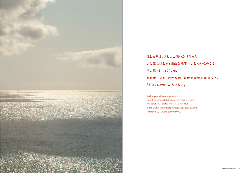 The Iemoto Interview series showcases engaging conversations between the Iemoto and notable figures from diverse fields, exploring their unique approaches. In this 36th installment, she engaged in a vibrant three-way conversation featuring copywriter Kunii Mika, the creative mind behind the Sogetsu 100th-anniversary copy, alongside this magazine’s art director, Nagai Hiroaki, who masterfully designed the centennial visuals. Together, they shared some insights and intentions behind their impactful message and visuals. Please view this together with the “Sogetsu 100th Anniversary Message”.