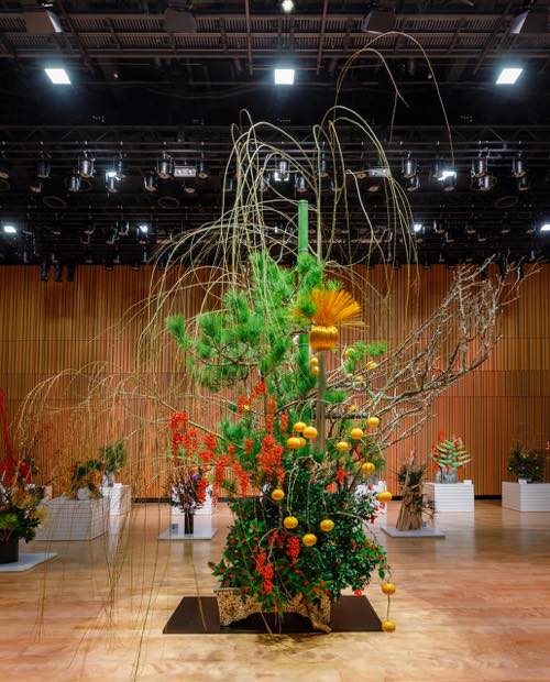 At GINZA PLACE located in the center of Ginza, one of the most prominent shopping districts in the world, the Sogetsu School collaborated with the tenants of the building to create this installation event for celebrating the New Year.