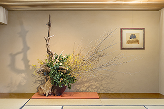 草月会館5階 日本間では、季節のいけばな作品を展示しております。