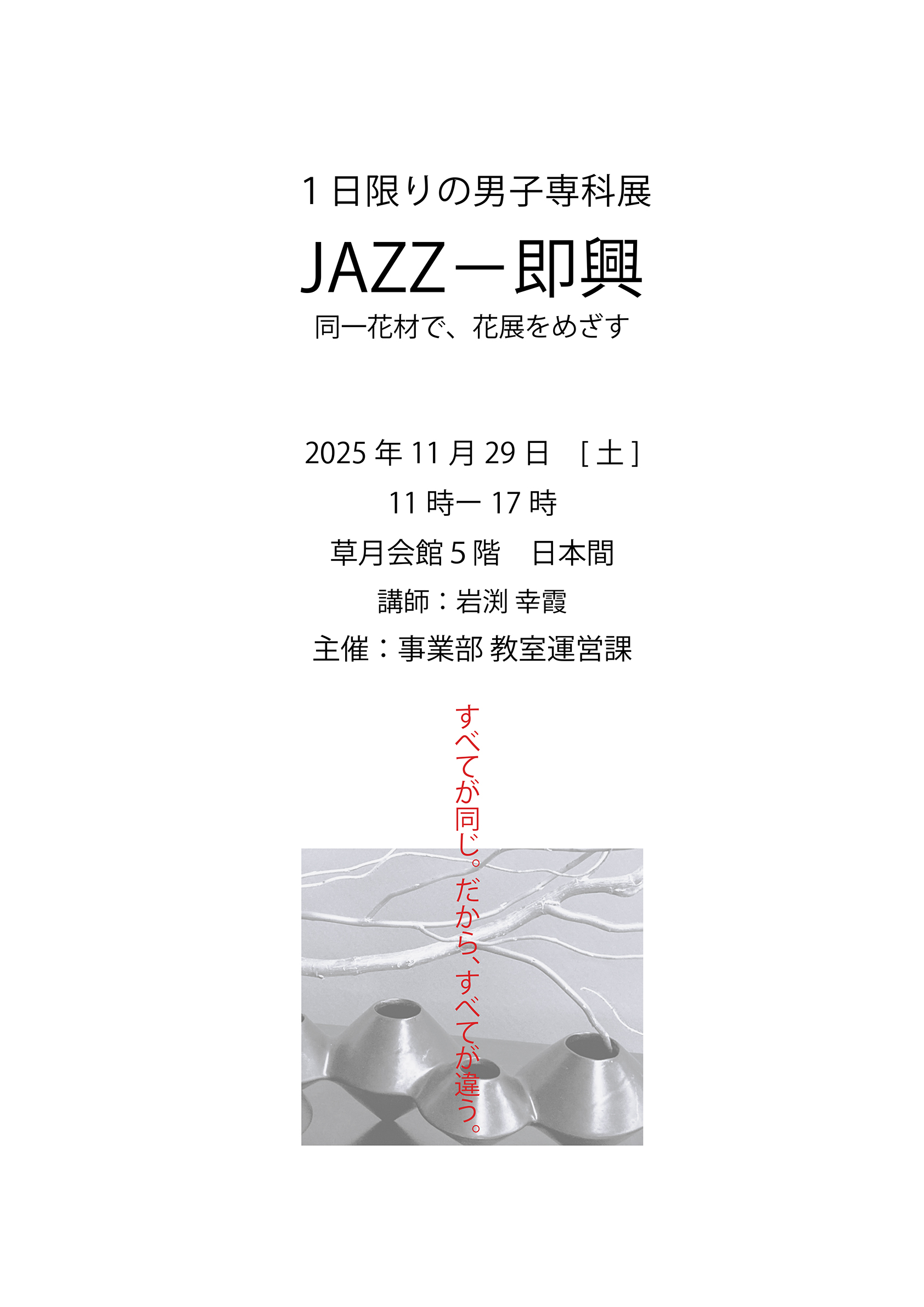 1日限りの男子専科展「JAZZ ー 即興」が開催されます