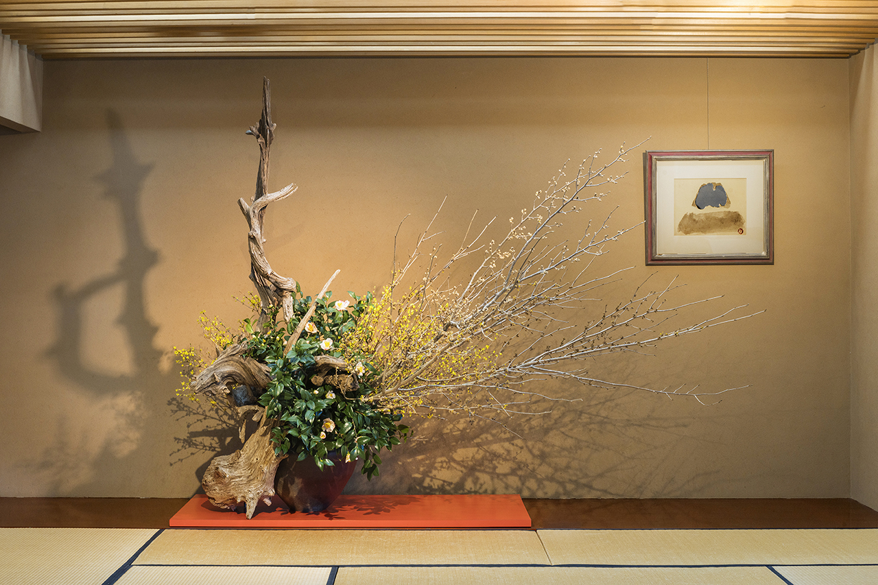 草月会館5階 日本間では、季節のいけばな作品を展示しております。