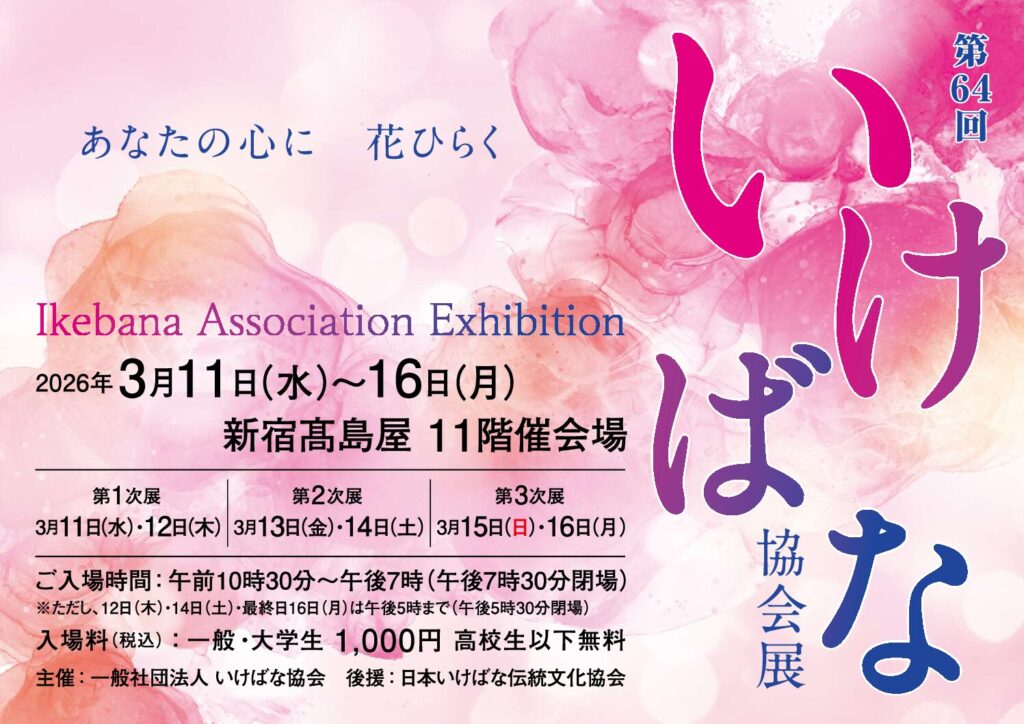 新宿髙島屋11階 催会場にて、第64回いけばな協会展が開催されます。