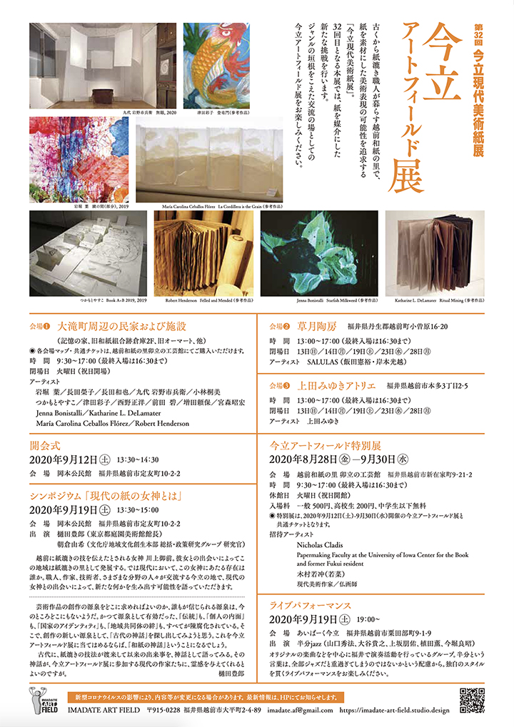 2020年は今立アートフィールド展と題し、越前和紙の里を舞台に紙を媒介にした新たな挑戦を行いたいと思います。