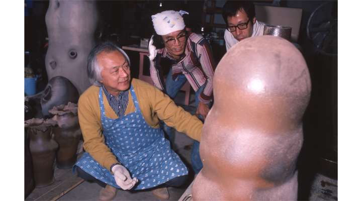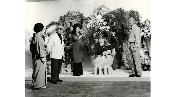 宏は陶芸・書・舞台芸術などジャンルを超えて活躍。社会との関わりを模索し、いけばなをあらゆる空間に進出させる「立体造形」を提唱。竹の作品で新時代をつくる。