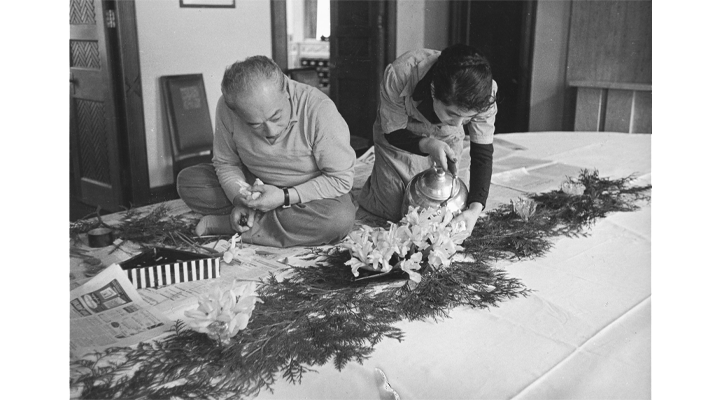 勅使河原蒼風は1900年、華道家・勅使河原久次の長男として大阪・堺に生まれる。その後、父のもとを離れ、1927年に草月流を創流。いけばな界に新風を巻き起こす。