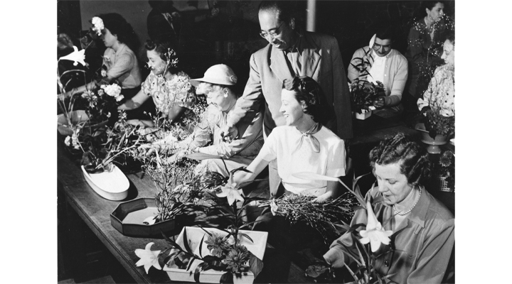 戦後、心のうるおい、文化を求める人々に、いけばなは復興のシンボルとして熱狂的に迎えられ、草月はその中心となる。進駐軍夫人にいけばなを教えるなどの活動も開始する。