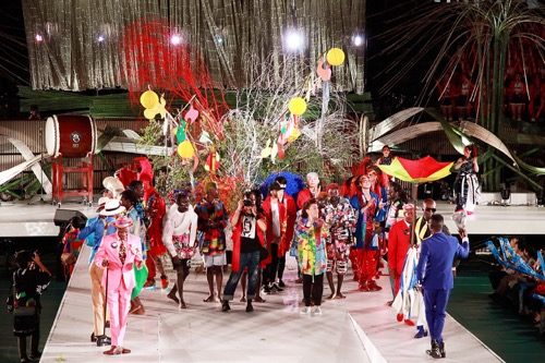 家元は竹の舞台装飾といけばなパフォーマンスを担当。会員の皆さんも出演し、会場を大いに盛り上げました。国籍や人種、性別、年齢、プロ、アマを問わない、そして文化や伝統、さらに業種、ジャンル、ブランドなど、複雑な垣根を超えて、全く新しいコラボレーションが実現しました。
